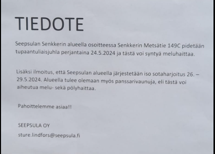 Hallitus tiedottaa : Melua Seepsulan suunnalta 24.5.2024